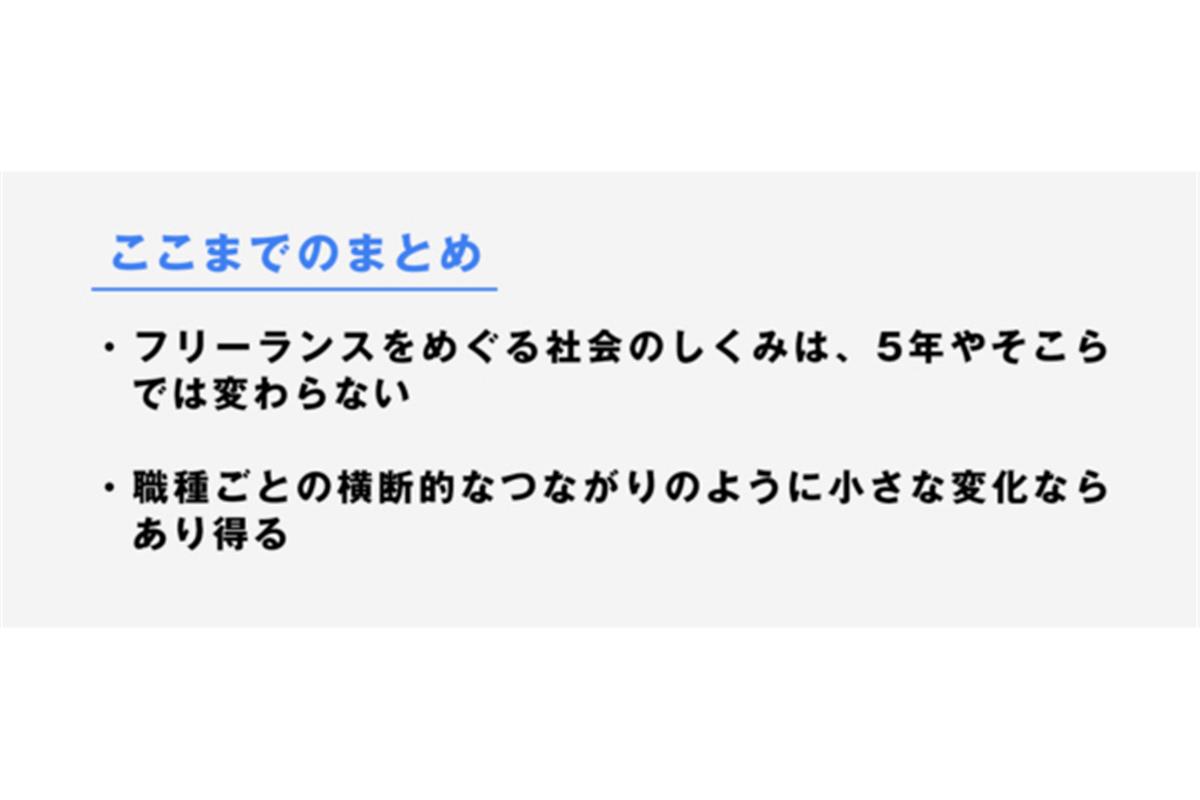 山中:では、2025年までに大幅に社会は変わらないなかでフリーランスとして生きていくために、個人のレベルでできることはあるでしょうか。