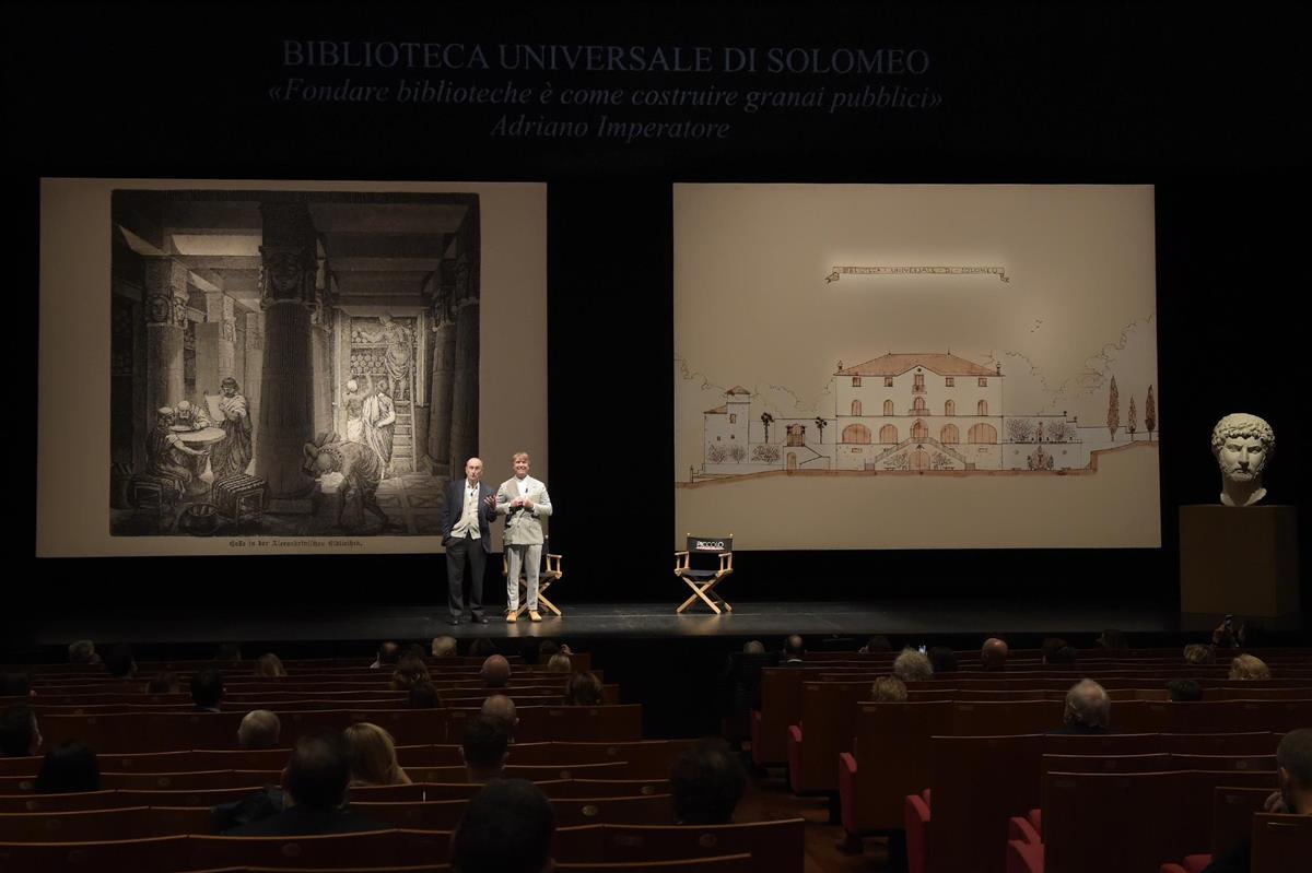 さて10月28日、ミラノの劇場でクチネッリ氏がソロメオに図書館をつくるとプレス発表した。2014年、同じ壇上で「ソロメオの丘にある中世の街の再生が終わり、これから平野の風景を美しくしていく」と語った。そして、4年後、プロジェクトは完了した。世界中から500人のジャーナリストを招きお披露目をした記事は、「風景の美醜に常に敏感であれ 『まもることにコミットする』大切さ」に書いた。
